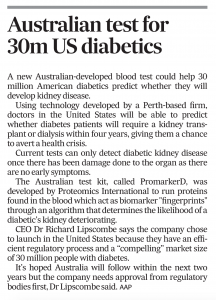 The Australian Financial Review – PromarkerD Australian-developed blood test could help for 30 million diabetics